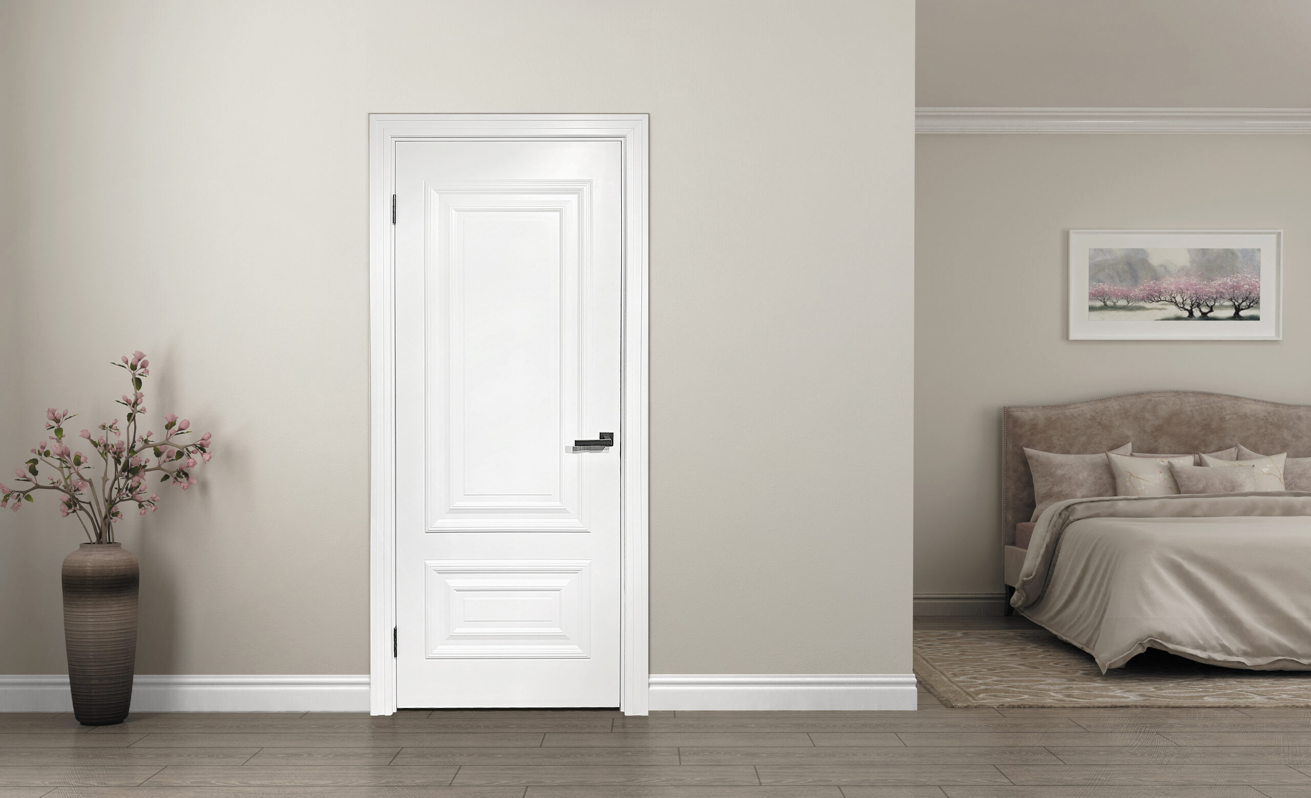Дверь в классическом стиле с баге- том — это воплощение элегантности и изысканности. Багет выполнен из того же материала, что и сама дверь, и гармонично сочетается с её дизайном. Он обрамляет дверное полотно, создавая эффектный акцент на его форме и пропорциях.